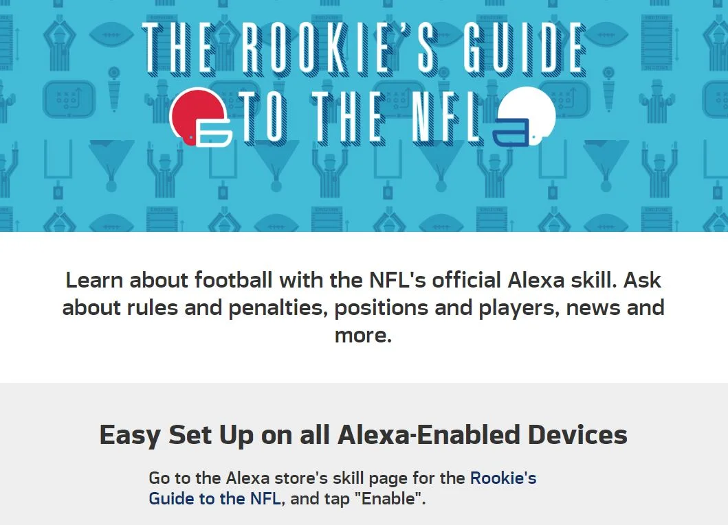 The Rookie’s Guide to the NFL targets new and casual NFL fans who wanted to learn about the sport to better enjoy the game. I wrote all the content for the Alexa Skill, which allows users to:
